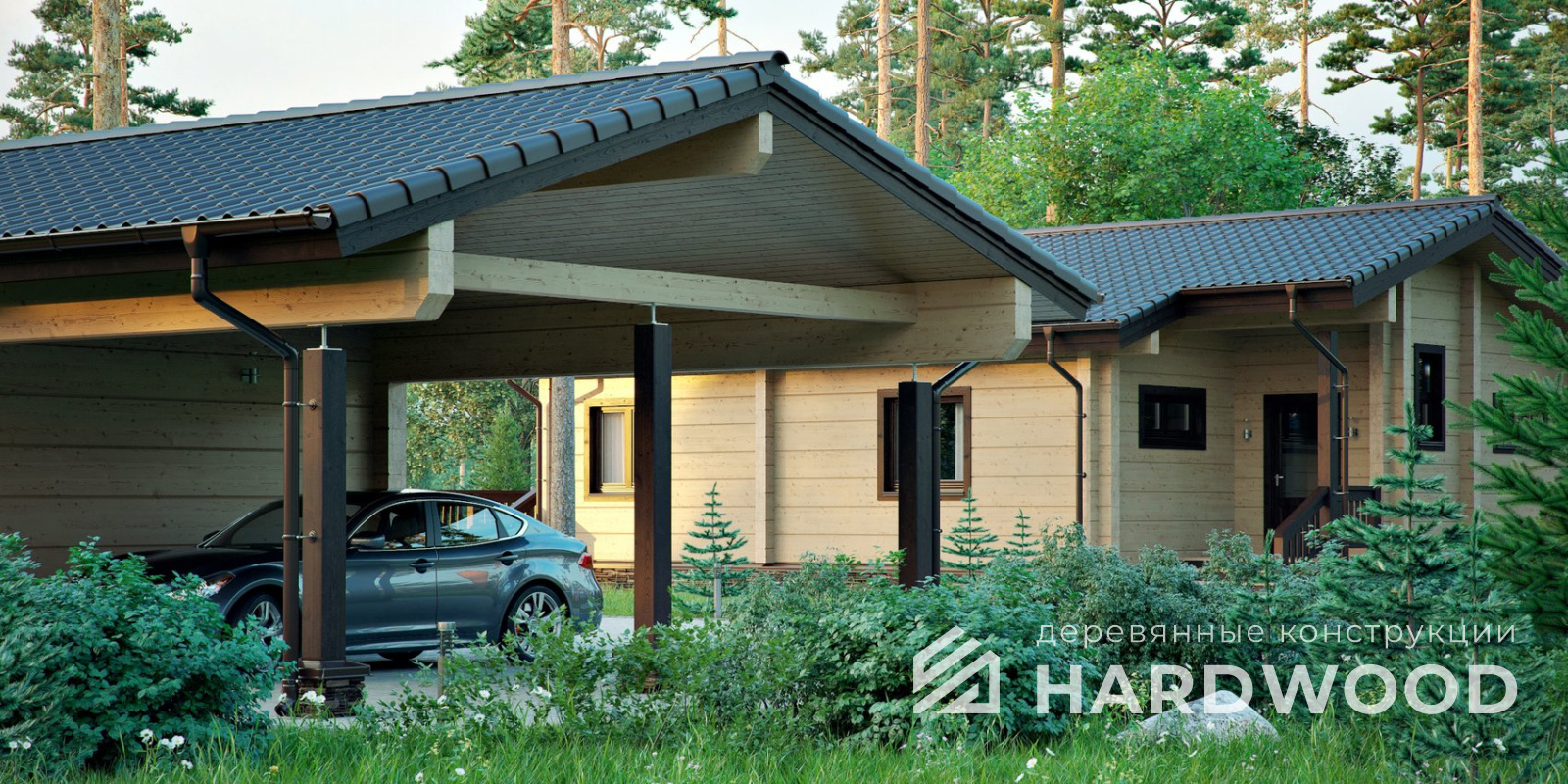 Деревянные навесы для автомобилей по акции